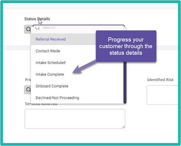 One of the great features of Lama Care is the ability to progress your customer through the referral process, quickly and efficiently with a click.