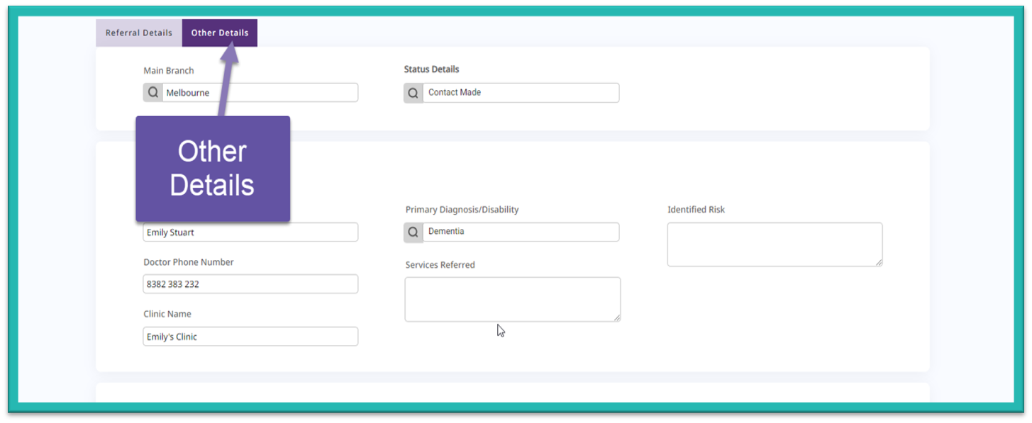 - Referrer includes support coordinators details (if this is a core support customer) or LAC or another organisation.